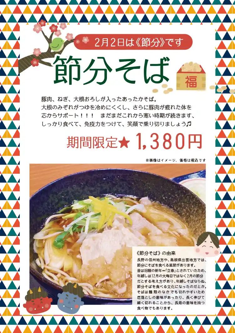 武蔵小金井店|期間限定★「節分そば」販売いたします!!!2月1日(土)~9日(日)まで…終了しました