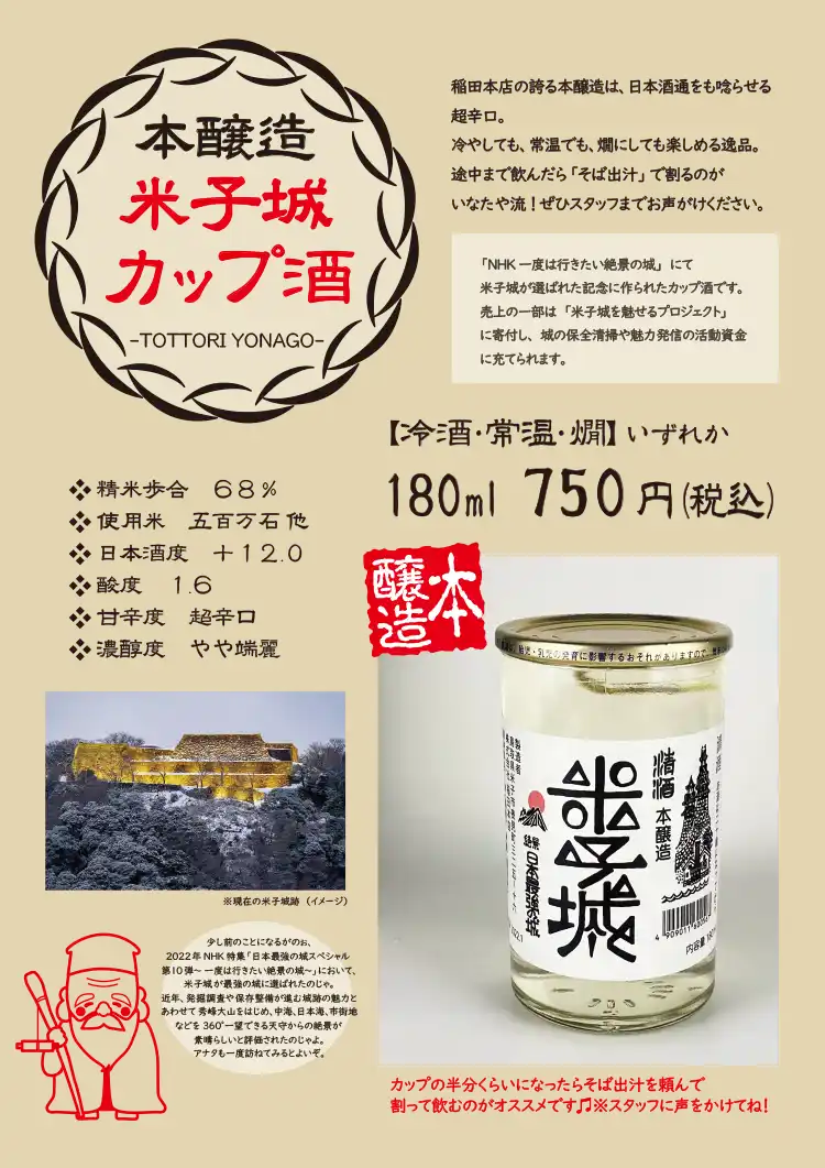 蕎麦処3店舗|2月 本醸造「米子城カップ酒」数量限定で入荷します!