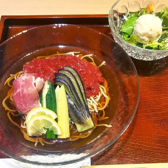 『生ハムとトマトの冷やしそば(サラダ付)』1,300円(税込)