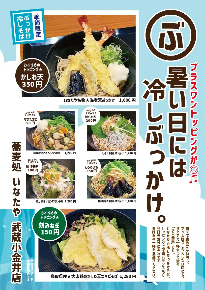 武蔵小金井店|季節限定「冷しぶっかけ蕎麦」大好評販売中!!!…終了しました
