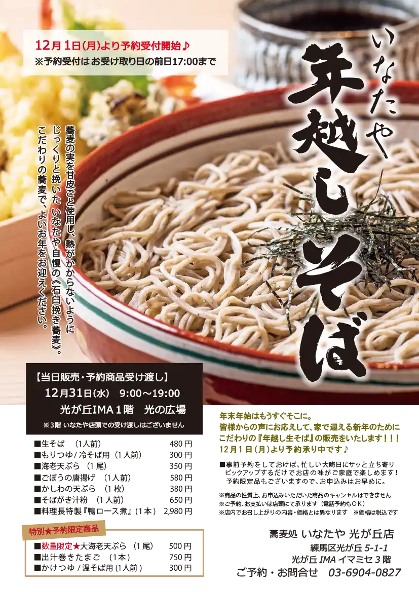 申込用紙: いなたや 光が丘店「年越しそば2025」チラシ/申込書