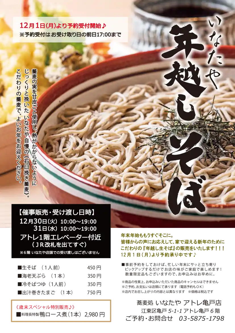 アトレ亀戸店|ご家庭用【年越しそば 2025】予約販売いたします!