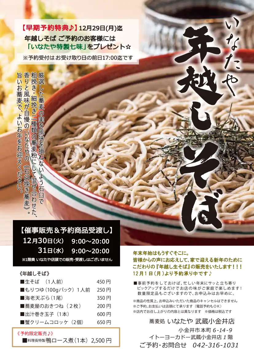 ご家庭で迎える新年に、いなたや自慢の『年越し生蕎麦』をご用意いたします!